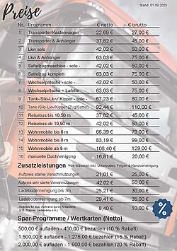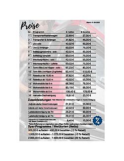 Mit unserer Treuekarte können Sie sparen, schauen Sie auf unserer Preisliste nach und entdecken Sie die verschiedenen Spar-Programme.