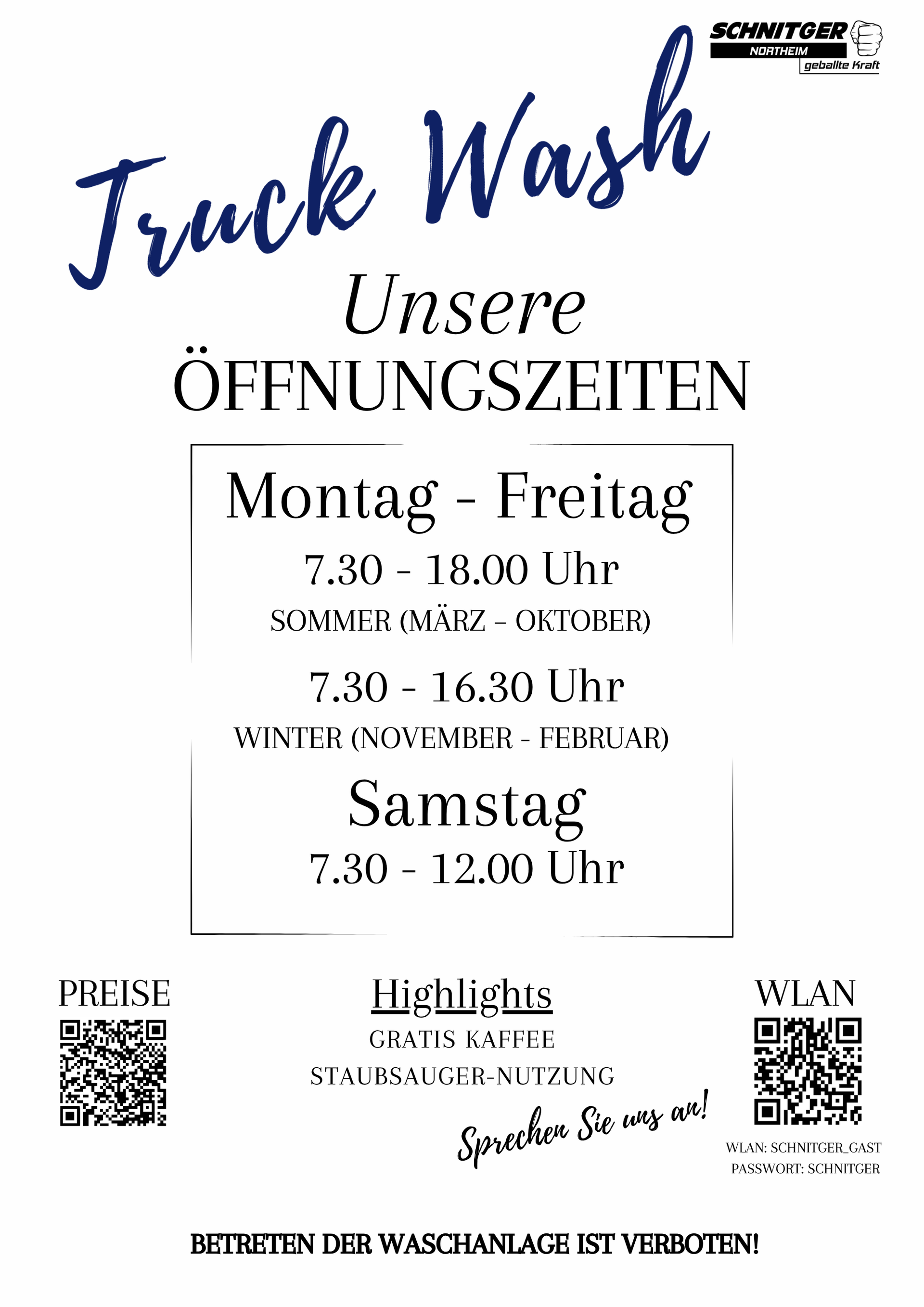 Unsere Waschanlage hat folgende Öffnungszeiten: